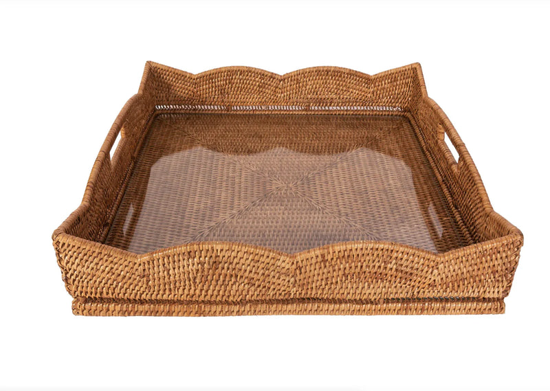 Scallop Square Tray With Glass Insert
